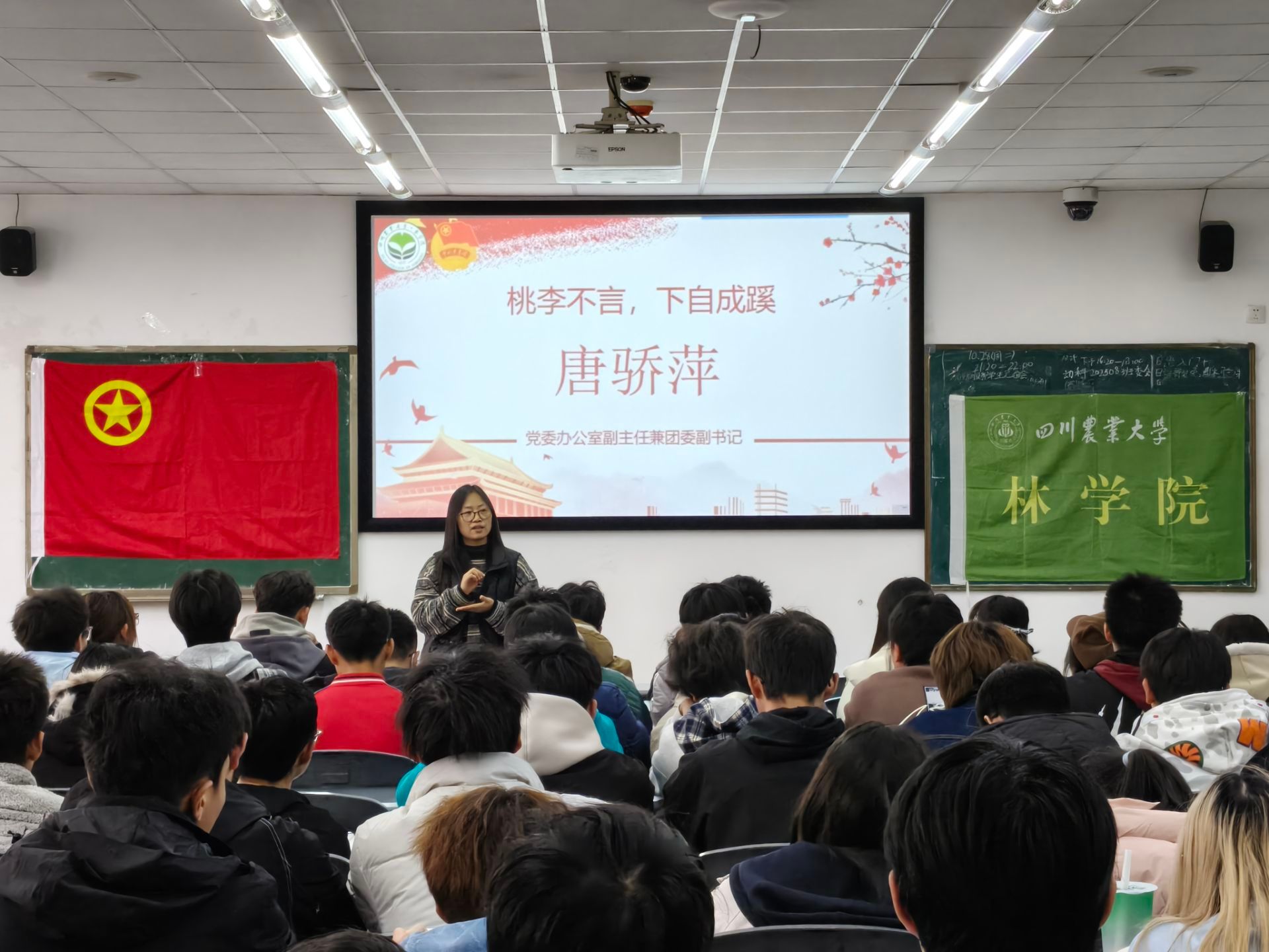 活动尾声,党委办公室副主任兼团委副书记唐骄萍老师作总结寄语。她再次将焦点引向“十五五”规划,深入剖析其对于当代老员工的重大意义,殷切期望同学们深刻理解时代使命,做好个人生涯规划,将青春汗水挥洒在“强农兴川”的广阔天地中,以诚信之姿、奋进之态,书写无愧于时代的青春答卷。