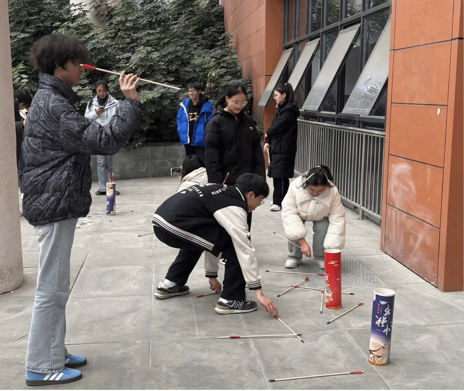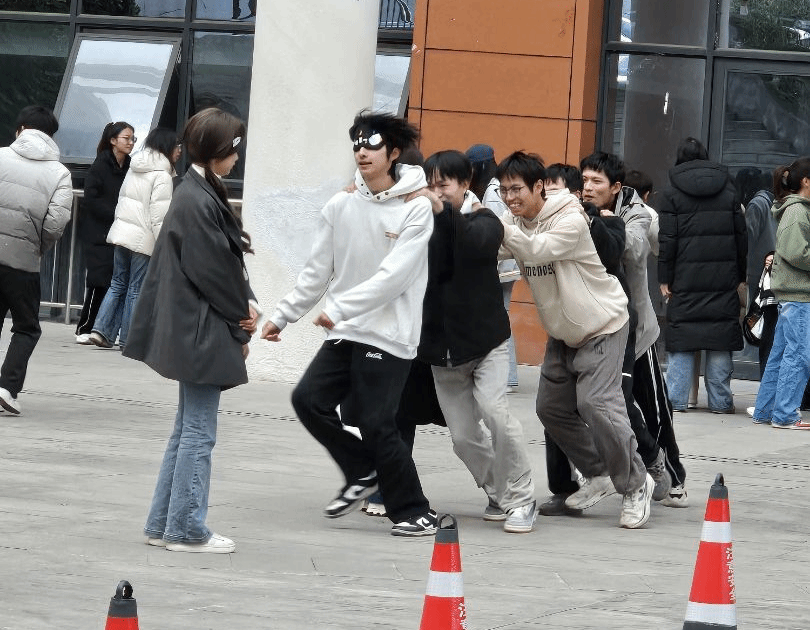 本次素拓设“齐心协力”“投矢入壶”“互帮互助”“一带一路”四大赛项,各队伍自主规划挑战次序,工作人员依赛绩积分定榜。赛场之上,青春活力肆意挥洒:“齐心协力”中,队员们绑腿并肩,从步履踉跄到步调协同,默契在磨合中悄然生长;“投矢入壶”现场,选手们敛气凝神、执矢投壶,银矢入壶的清脆声响,伴着阵阵欢呼在广场回荡;“互帮互助”环节,队员背夹气球接力疾行,严守“手不触球”之规,小心翼翼的模样让赛场漾起融融笑意;“一带一路”项目里,蒙眼队员在队友的口令中跨越障碍,信任化作前行的灯塔,指引着团队步步向前。