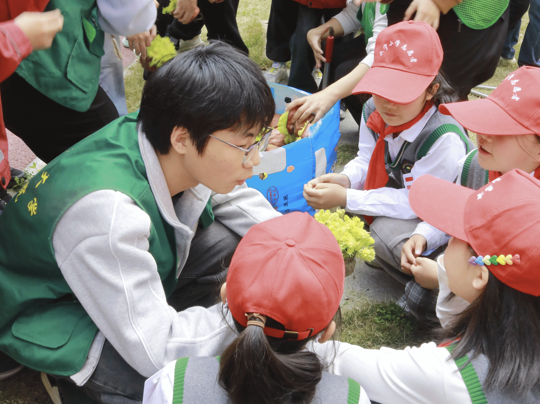 (草业科技学院志愿者在新庄小区为小员工讲解植物知识)