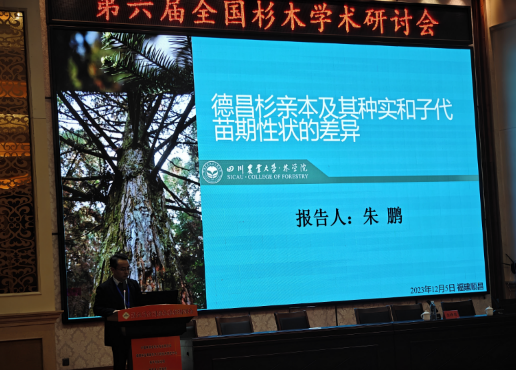 包括来自北京林业大学的尹伟伦院士在内的5位专家学者分别作了大会特别报告。与会专家、企业代表等重点围绕“杉木种质资源创新、良种繁育及高效培育技术”“杉木林下经济、地力维护及碳提升技术”“杉木绿色产品培育与利用及杉木文化”等主题作了40余场学术研究报告。朱鹏副教授在“杉木种质资源创新、良种繁育及高效培育技术”分会场做了题为“德昌杉亲本及其杂交种实和子代苗期性状差异”的学术报告。