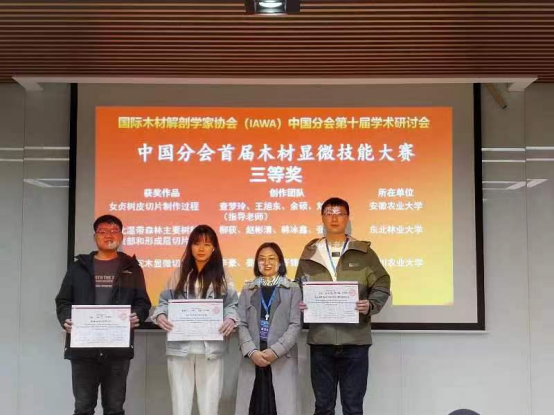 会议期间,还举行了首届木材显微切片制作大赛,由齐锦秋教授指导、姜永泽和李豪制作的桢楠木材显微切片在木材显微切片技术制作大赛中荣获三等奖。