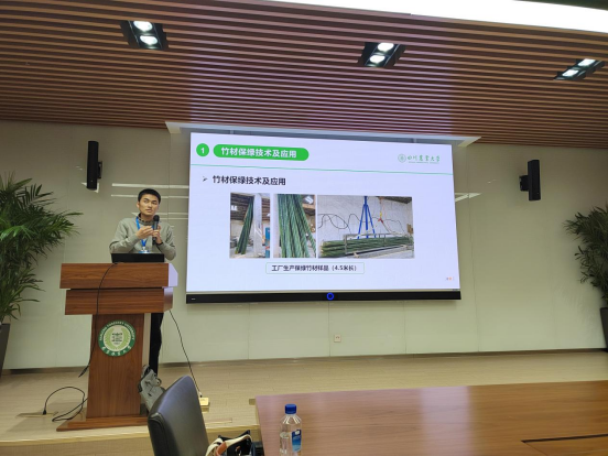 本次大会以“强化木材科学基础研究,深化林草交叉团队建设”为主题,大会共设主题报告会场1个,分会场4个,来自国内的100余位代表作报告。谢九龙教师在竹、藤资源材料构造与应用的分会场作了“保绿前后毛竹表面结构特性的差异化研究”的报告,就保绿竹材技术的研究进展与参会代表进行了深入交流。