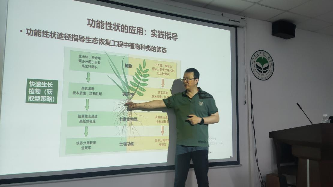 6月26日上午,应学院邀请,兰州大学草地农业科技学院刘满强教授在成都校区五教MK SPORTS会议室为师生做了题为“功能性状途径:解析植物调控土壤线虫的新框架”的学术报告。报告由MK SPORTS副经理徐振锋主持。刘满强教授详细介绍了植物影响土壤生物的意义,从植物和土壤生物功能性状的协同发展的角度,提出基于功能性状的途径解析植物介导土壤线虫的框架。通过植被演替中土壤线虫的功能性状演变、退耕地根系功能性状与土壤线虫功能性状的关系以及绿肥植物生态策略与线虫功能性状介导三种案例系统阐释了植物调控土壤线虫的新框架。报告结束后,学院师生与刘满强教授积极互动交流,就研究土壤动物功能性状过程中遇到的主要问题进行了讨论。
